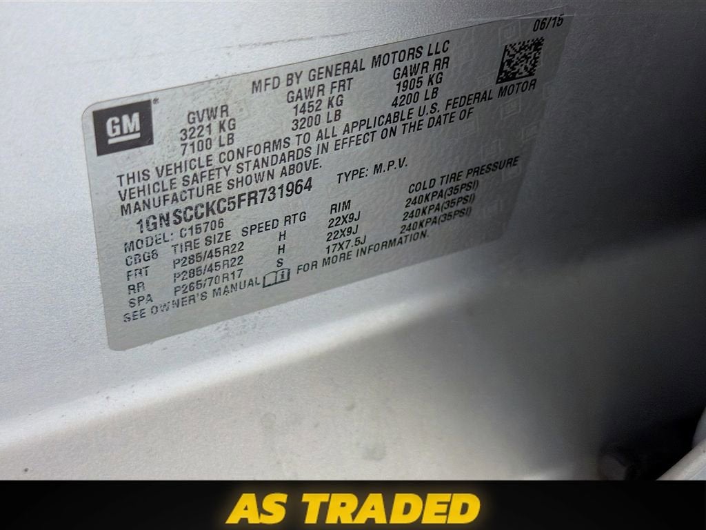 2015 Chevrolet Tahoe offered as traded. This is a nice SUV for the money, but it is being sold as-is with no warranties expressed or implied. Vehicle runs and drives, but will need repairs. Noted items include catalytic converter codes (P0420), oil cooler line leak, assist steps inop, liftgate and OnStar concerns, and worn/chopped tires. If youre looking for a perfect vehicle, this isnt it. If youre looking to save money and dont mind putting some work into it, this could be the one for you.