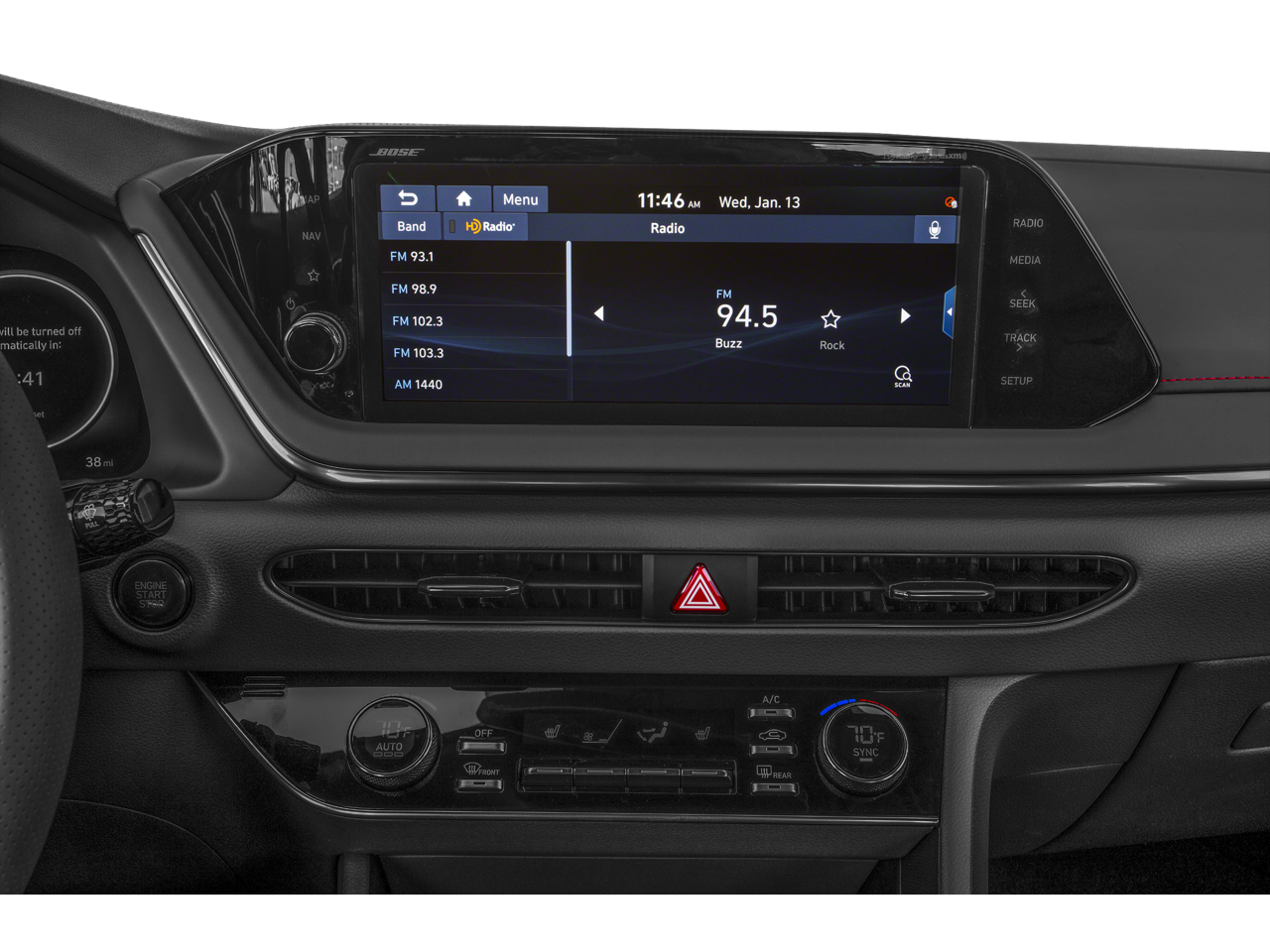 - Radio: AM/FM/MP3/HD/SiriusXM Display Audio -inc: 8" color touchscreen, 6 speakers (2 front door mounted speakers, 2 tweeters and 2 rear speakers), integrated Bluetooth®, Blue Link connected car system, Apple CarPlay, Android Auto and USB charge port